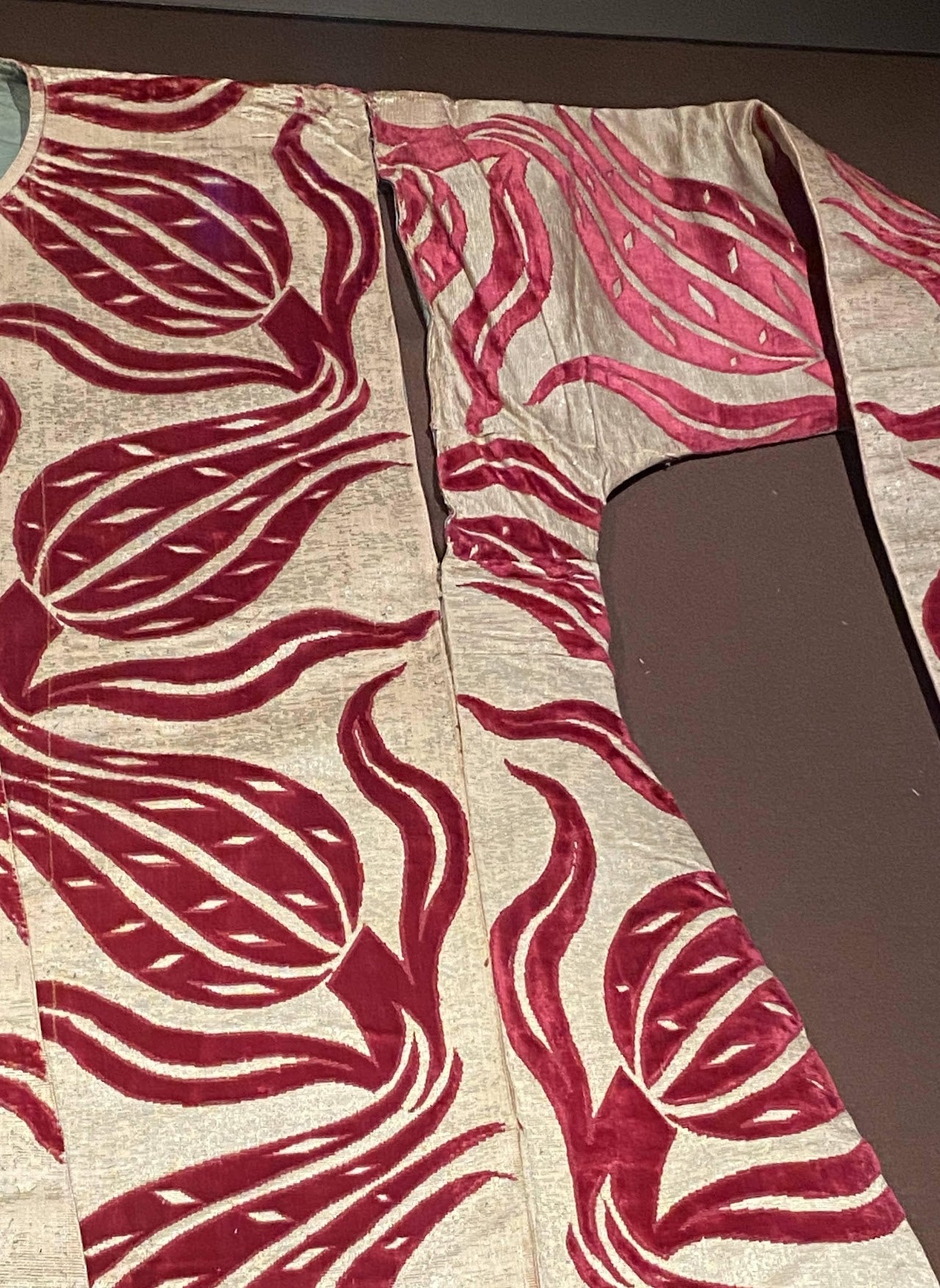 Orijinal tarihi eserden esinlenmiştir; Kırmızı İtalyan İpeği Tören Kaftanı, 16. yüzyıl, Osmanlı İmparatorluğu, Topkapı Sarayı Müzesi Koleksiyonları, İstanbul.